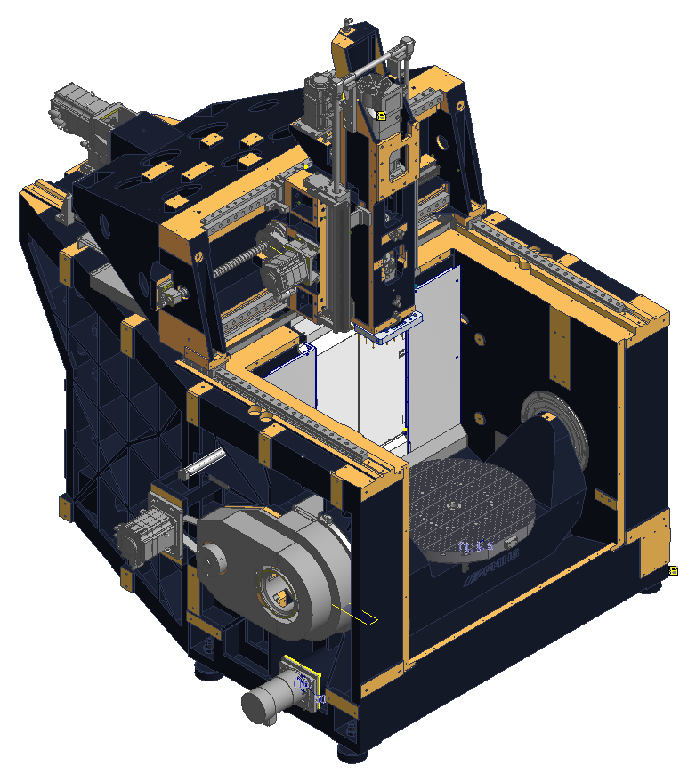 Использование высокотехнологичной европейской механической трансмиссии GTRT обеспечивает высокий крутящий момент оси A 4142 Нм, оси C — 1950 Нм в сравнении с обычными поворотными приводами. Несмотря на высокий крутящий момент — энергопотребление низкое. С такой системой стол GMU-800 получает жесткость, стабильность и точность вращений.