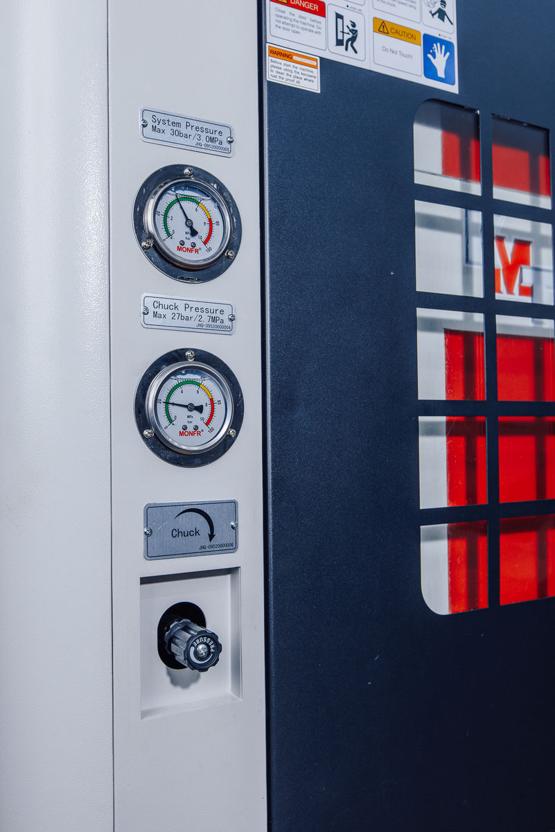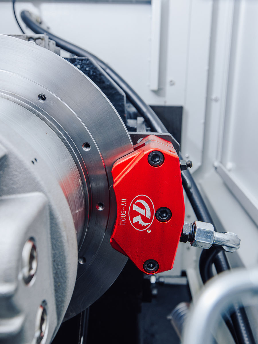 На токарном центре KTL установлен главный двигатель повышенной мощности производства Fanuc (Япония) . Передача крутящего момента с основного двигателя на шпиндель осуществляется за счет клино-ременной передачи, что значительно уменьшает шум при работе. Скорость вращения шпинделя регулируется бесступенчато, что обеспечивает высокую точность и шероховатость обработки. Станок оснащен шпинделем с полым гидроцилиндром для обработки прутков до Ø 75 мм производства Chandox (Тайвань).