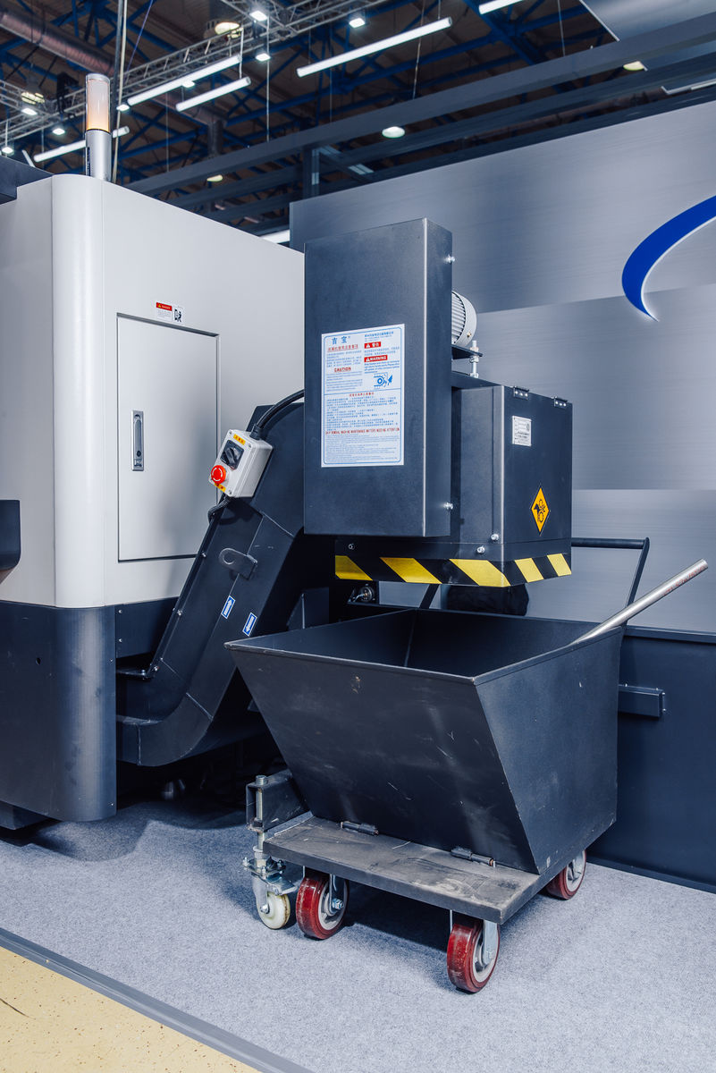Транспортер удаления стружки с тележкой Эффективно удаляет стружку из зоны резания и позволяет работать на станке без остановок на обслуживание. С конвейером поставляется корзина для сбора стружки. |